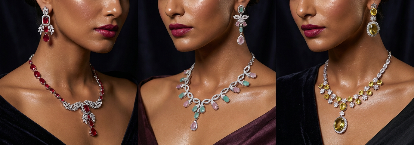 Discover the Timeless Beauty of Our Premium American Diamond Necklace Set